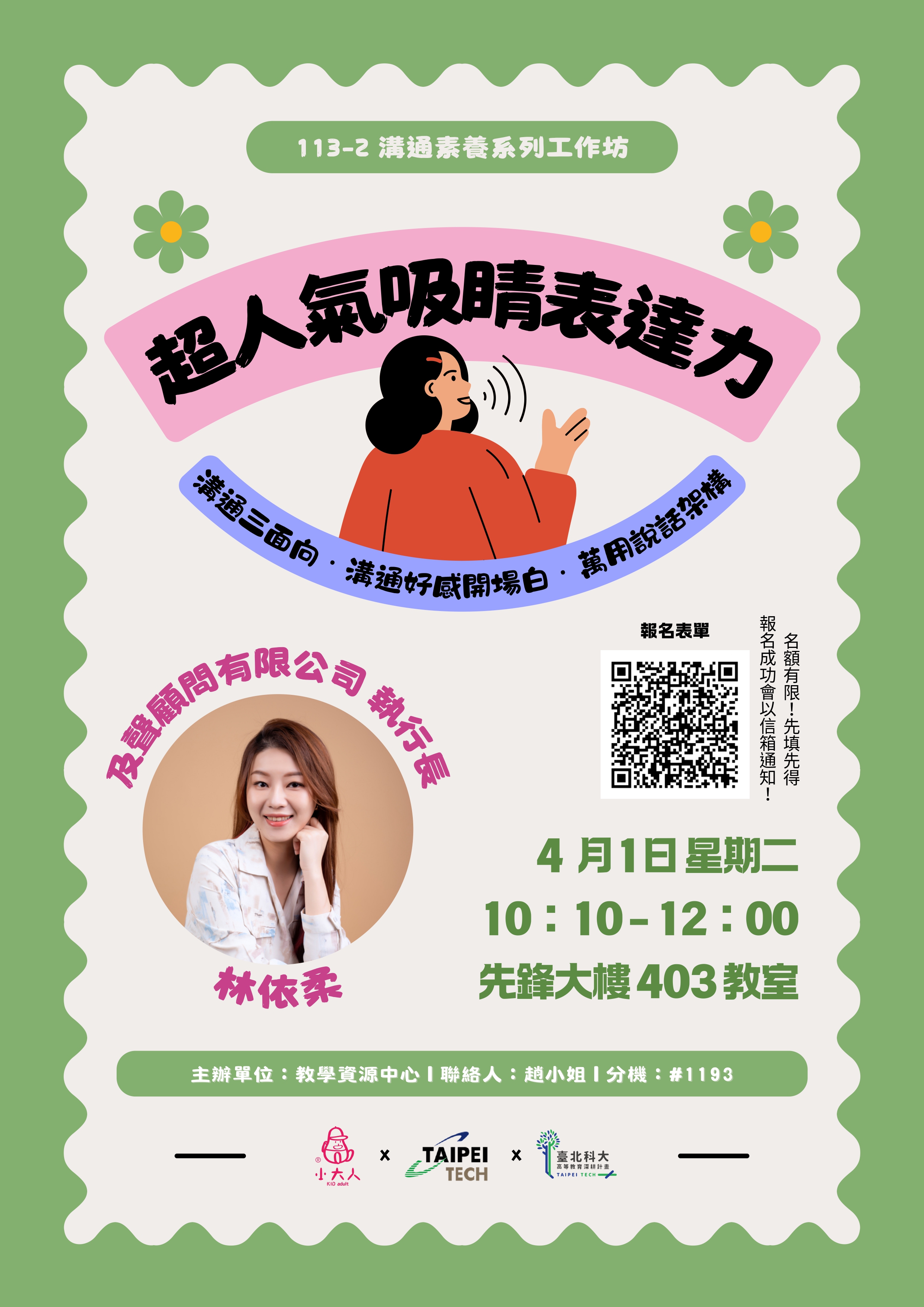【講座】04/01(二)10:10-12:00 主題:【超人氣吸睛表達力】